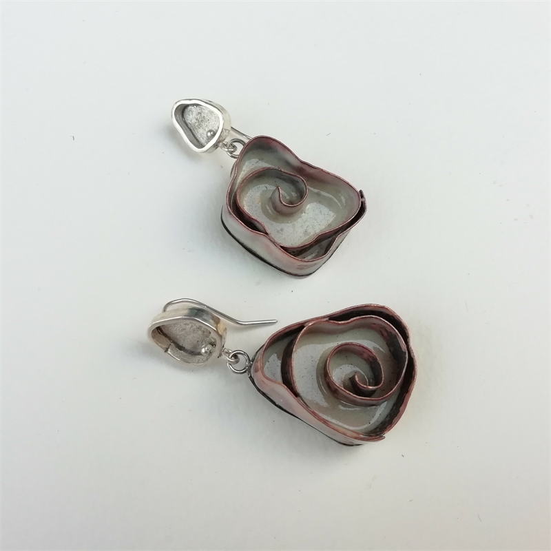 Material Plata de Ley, alpaca, cobre y esmalte al fuego.