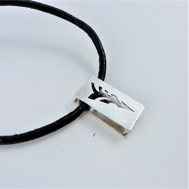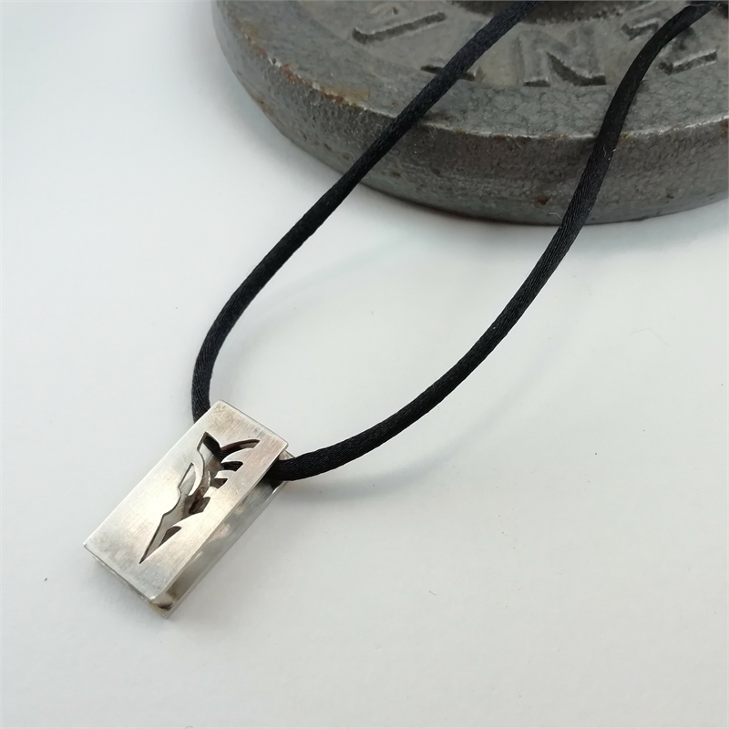 Colgante unisex de diseño original. Dispone de dos planos para aportar cierto volumen a la pieza muy compacta y detallada. Cordón no incluído.